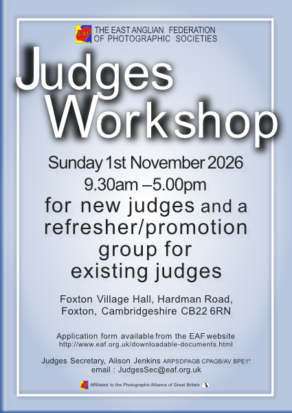 PAGB Awards for Photographic Merit (APM) Adjudication hosted by the EAF in Colchester at Colchester County High School for Girls, Norman Way (off Lexden Road),Colchester Essex, CO3 3US.